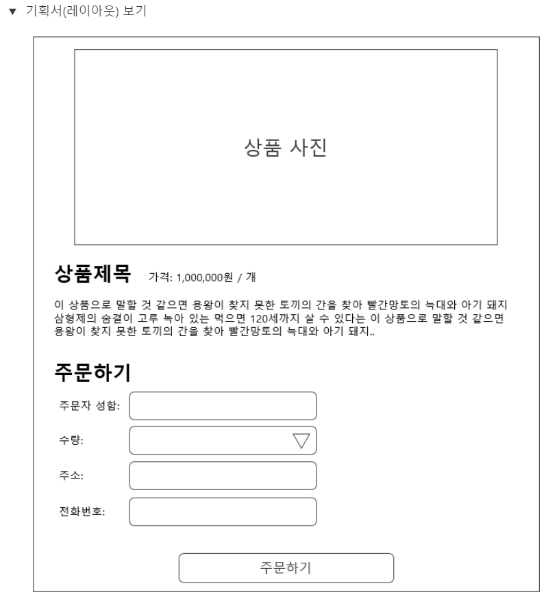 JavaScript로('주문이 완료되었습니다!')기능까지 넣어주어 아주 간단한 원페이지 쇼핑몰 완성!