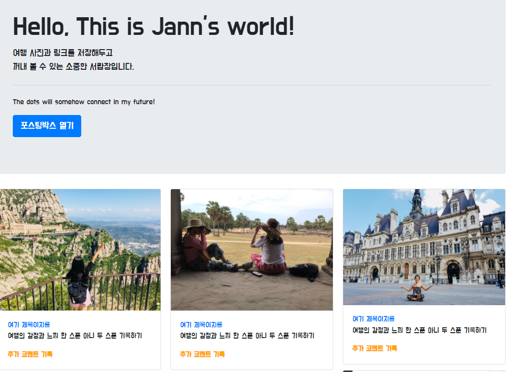 부트스트랩 페이지에서 jumbotron, card-columns 의 형태를 가져와 메모장/ 게시판을 만들었다.