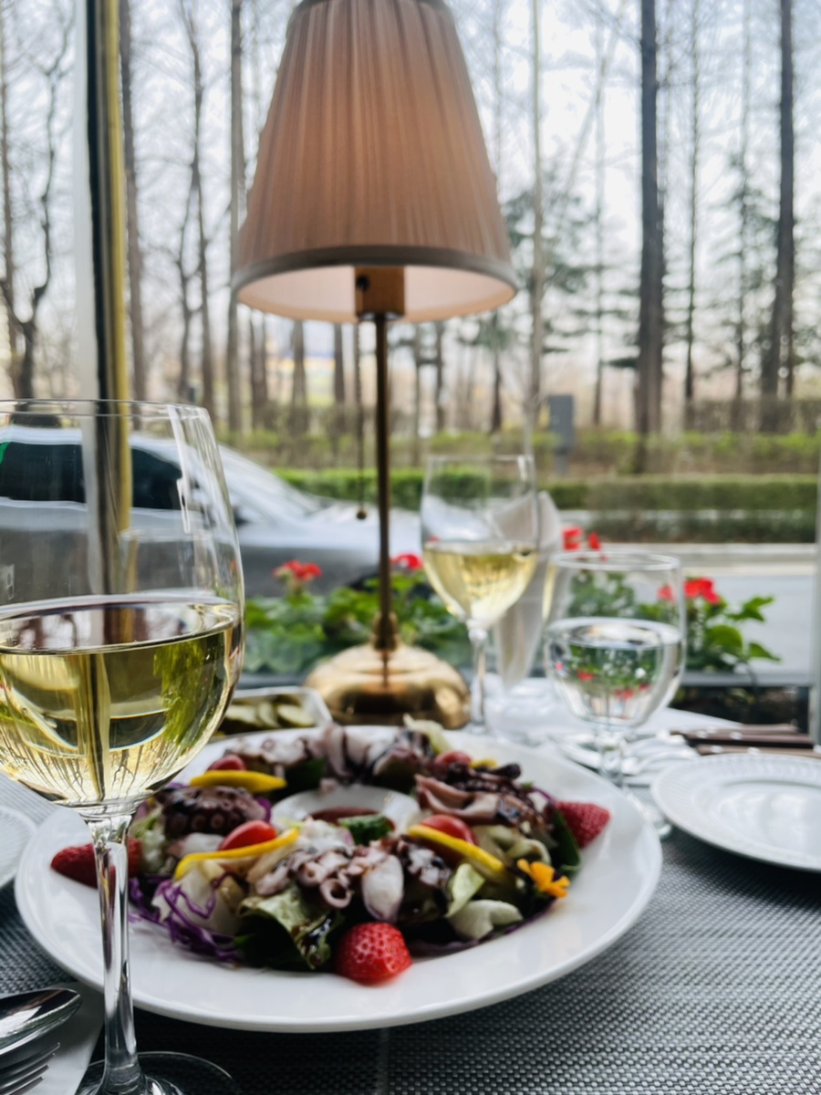 막상 먹어보니 정말 맛있었어요. 문어랑 와인을 먹었던 것은 생에 처음이었는데 해산물이라 그런지 화이트와인과 조화가 굉장히 좋았어요! 문어숙회 + 화이트와인 조합 좋아요!