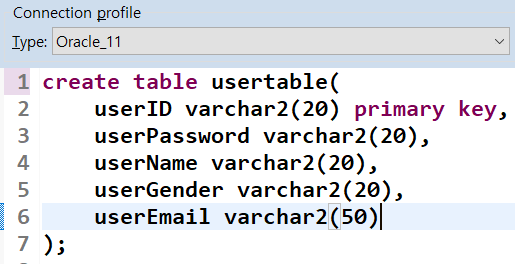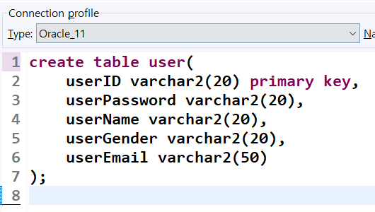 user_t 또는 usertable 등의 단어로 테이블을 만들 수 있다.