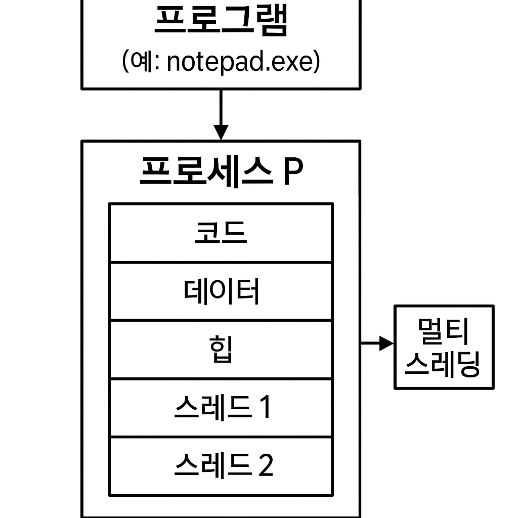 notepad.exe 같은 실행 파일을 클릭하면, 운영체제가 이를 읽고 메모리에 적재하며 실행 가능한 프로세스로 변환해요. 이때 CPU와 메모리 자원이 할당되고, 프로세스가 실행되죠.