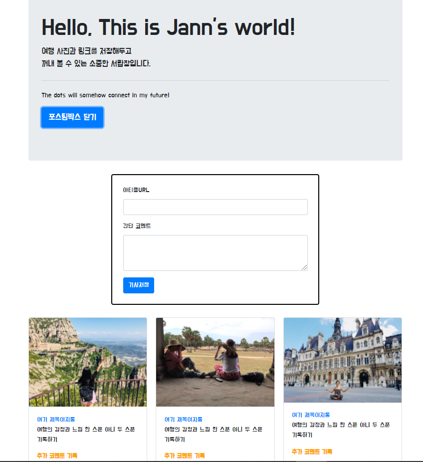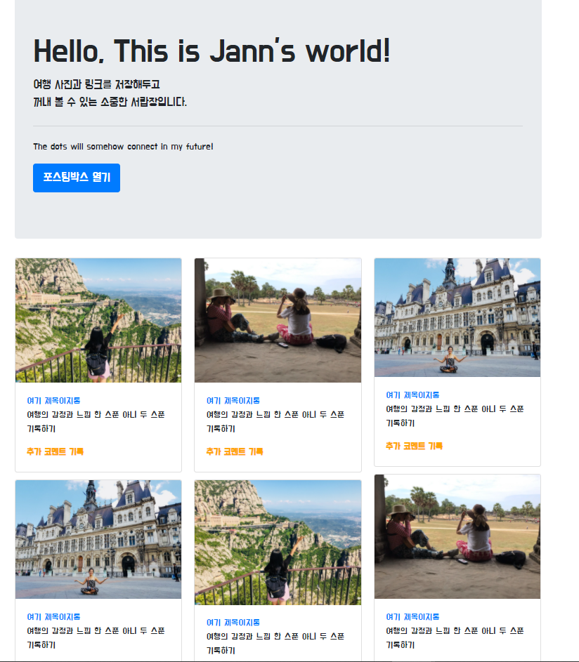 <p class="lead"> 여행 사진과 링크를 저장해두고<br>꺼내 볼 수 있는 소중한 서랍장입니다.</p>