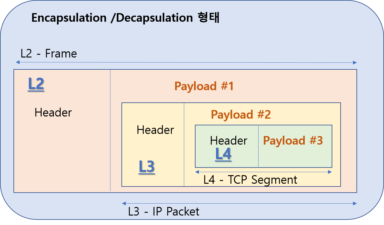- L2 전체 Frame, IP packet L2의 Payload