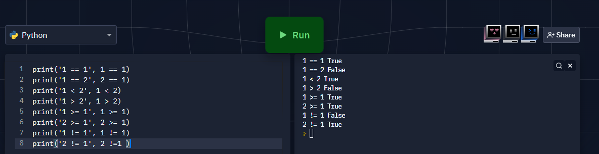 비교 연산을 위한 데이터 타입 Boolean = 참 True + 거짓 False