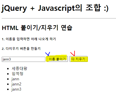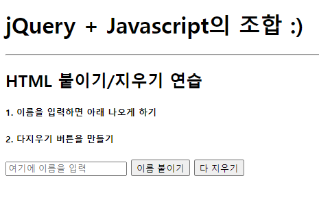 <h2> HTML 붙이기/지우기 연습</h2>